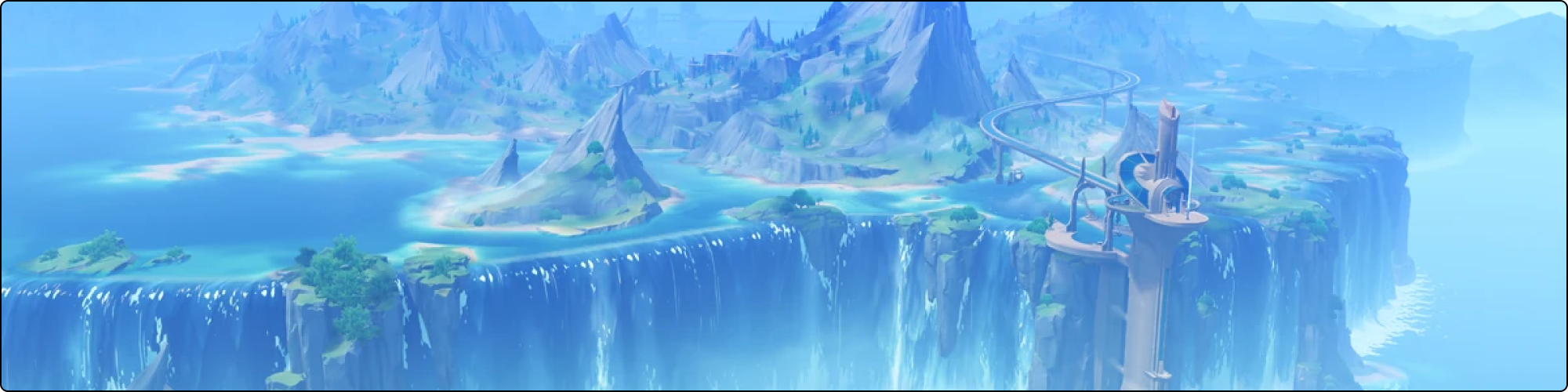 Of the regions of Teyvat, Fontaine prides itself as the hub of culture and the arts; or in the words of Francis, a traveling merchant from the region, "true beauty and elegance." The newspaper The Steambird is the main newspaper of the Court of Fontaine; Mona is a columnist on it, suggesting that they have writers from all across Teyvat. According to the Steambird, Fontaine is located in the center of Teyvat[3] and is the source of all waters on the continent. Its entire continental plate is elevated, making it significantly higher than other nations. At the edge of Fontaine is a massive waterfall that stretches for thousands of meters. Fontaine boasts its immersion in the development of technology, as referenced in multiple story points — such as the Mikage Furnace, designed by Fontaine engineers, including Xavier; and limited events — such as in Fabulous Fungus Frenzy, where the Wisdom Orb is a Fontaine-local-designed equipment designed to suppress specific behaviors in organisms. Minor events that have featured Fontaine's technologic prowess include Core of the Apparatus, which features Fontainian inventions that can manufacture toys and furnishings, and Evermotion Mechanical Painting, which features mechanical gear systems. There is a special energy system in Fontaine; however, it is mentioned to be on the verge of declining, causing many people to seek alternative sources.[4] Additionally, Santon states that the air in Fontaine is "practically toxic fumes" and that there is much less connection to nature there, though he is not necessarily referring to the entire region.[5] According to Vasco, a diving certificate can be obtained in Fontaine, and diving itself is an important profession in the nation. Liben had described Fontaine's locals as believing that some type of "judgment" was "soon to come," possibly in reference to the prophecy described in the Archon Quests about the nation being destroyed by rising sea levels to absolve its people of their "sin." The Fontaine Research Institute is located in Fontaine, though its original main buildings were destroyed in an experiment conducted by Edwin Eastinghouse. Other races also reside in Fontaine, such as the Melusine and, once upon a time, the Oceanids.
